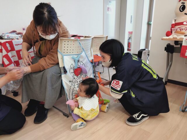 親子スペースでは小さなお子さまを対象に弊社の保育士による「読み聞かせ」「親子の触れ合いあそび」を行い、スペシャルゲスト「ヤクルトマン」も登場✨