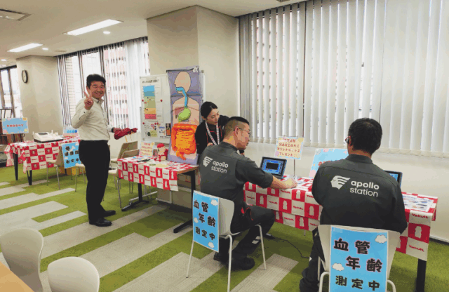 こちらの企業さまでは、2週間にわたり全営業所の皆様が健康診断と予防接種を受けられるとのこと。この大切な機会に合わせ、従業員の皆さまの健康意識向上に貢献できるよう、弊社の測定会および試飲会を導入いただきました。