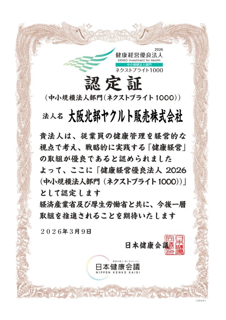 この度当社は、経済産業省および日本健康会議が実施する「健康経営優良法人2026」において、中小規模法人部門で認定された23,085社のうち、特に優良な健康経営を実践している上位501社から上位1000社に対して付与される「健康経営優良法人2025 中小規模法人部門 ネクストブライト1000」に認定されました。