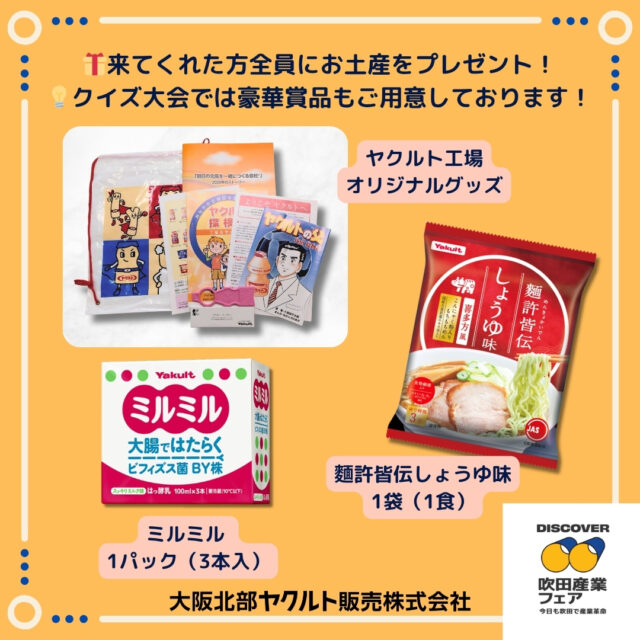 🎁ご来場いただいた方全員に、 ヤクルトの工場限定グッズのお土産をご用意しています!